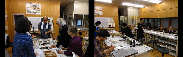 実演では、基本の油性インクを使った木版多色刷りの成立ちが、よくわかり、印刷技術が進んだ現代で「自刷り」の意義を感じる講義でした。また、美術との関わりや作家としての制作姿勢を幼少期のお話しに加え南画への憧れや10代での貴重な中国での就職・戦争・引上げ・結婚に至るまでの半生に交えて学べました。特に海外を含めた取材旅行やギャラリー巡り時のご自身の教訓である「私の作品に似ているものはないか?万が一似ているものがあれば、方向転換含め真のオリジナリティーを掴もう」という言葉には、身の引き締まる思いをしました。